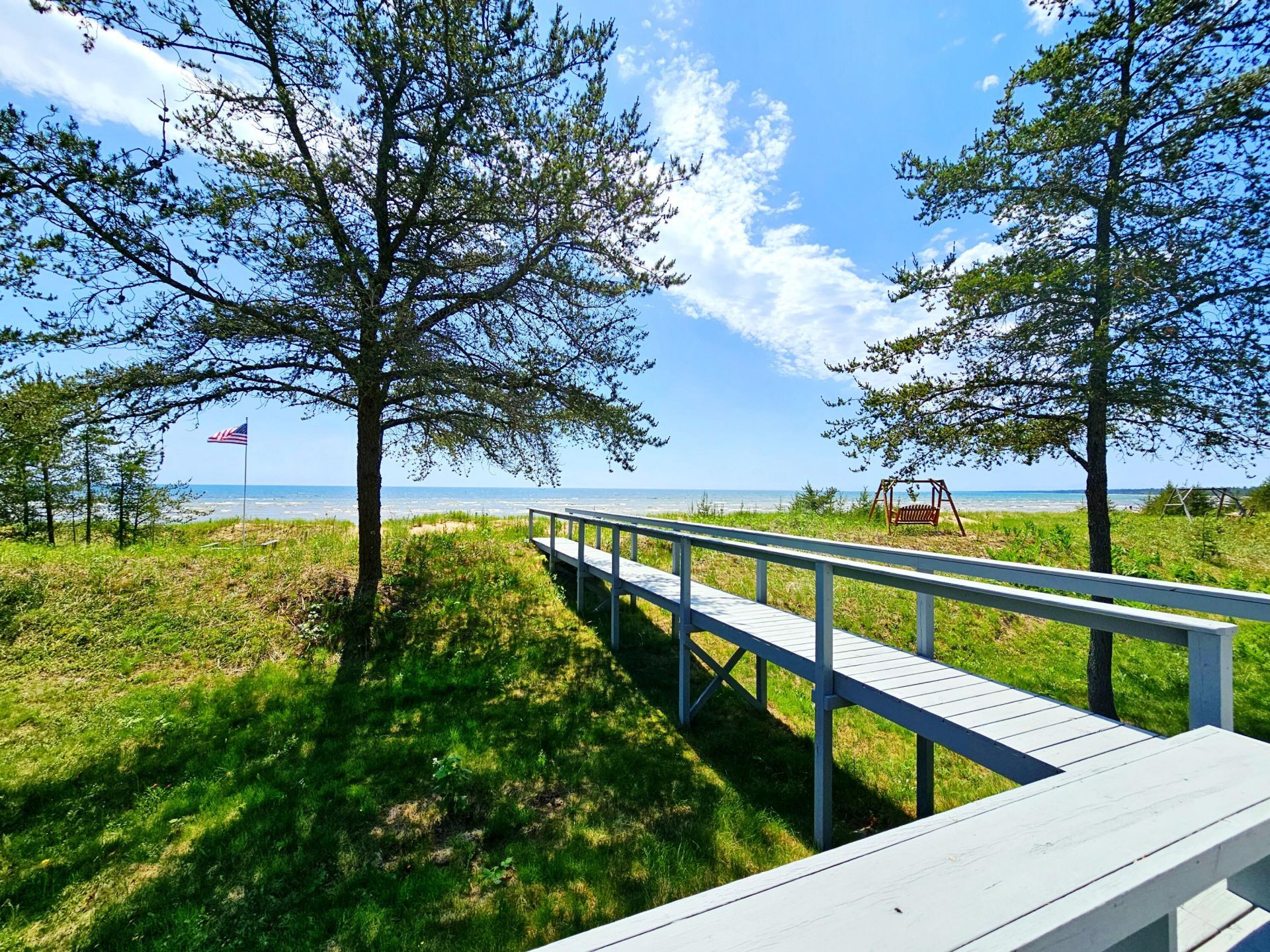 A unique opportunity to own 100 feet of pristine Lake Michigan frontage in the exclusive Hiawatha Sportsman's Club - over 35,000 acres of Upper Peninsula recreational opportunities; including trails, lakes, stocked trout ponds, golf course and many more club amenities. This is a charming 3-bedroom, 2 bath home with a sunny breezeway/beach room. Enjoy this well-maintained home, landscaped yard and fully furnished, for move in ready convenience. Stay cozy during cooler months with a natural stone fireplace featuring high efficiency insert capable of heating the entire home. KEY FEATURES: - 100 feet of private Lake Michigan Frontage- Beautiful Lake Michigan Views, beach and fire pit- Spacious front and rear decks- Large 2 car attached garage- Fully furnished with knotty pine in